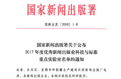古籍數(shù)字化與知識工程重點實驗室榮獲國家新聞出版總署“2017年度優(yōu)秀新聞出版業(yè)科技與標準重點實驗室”獎項