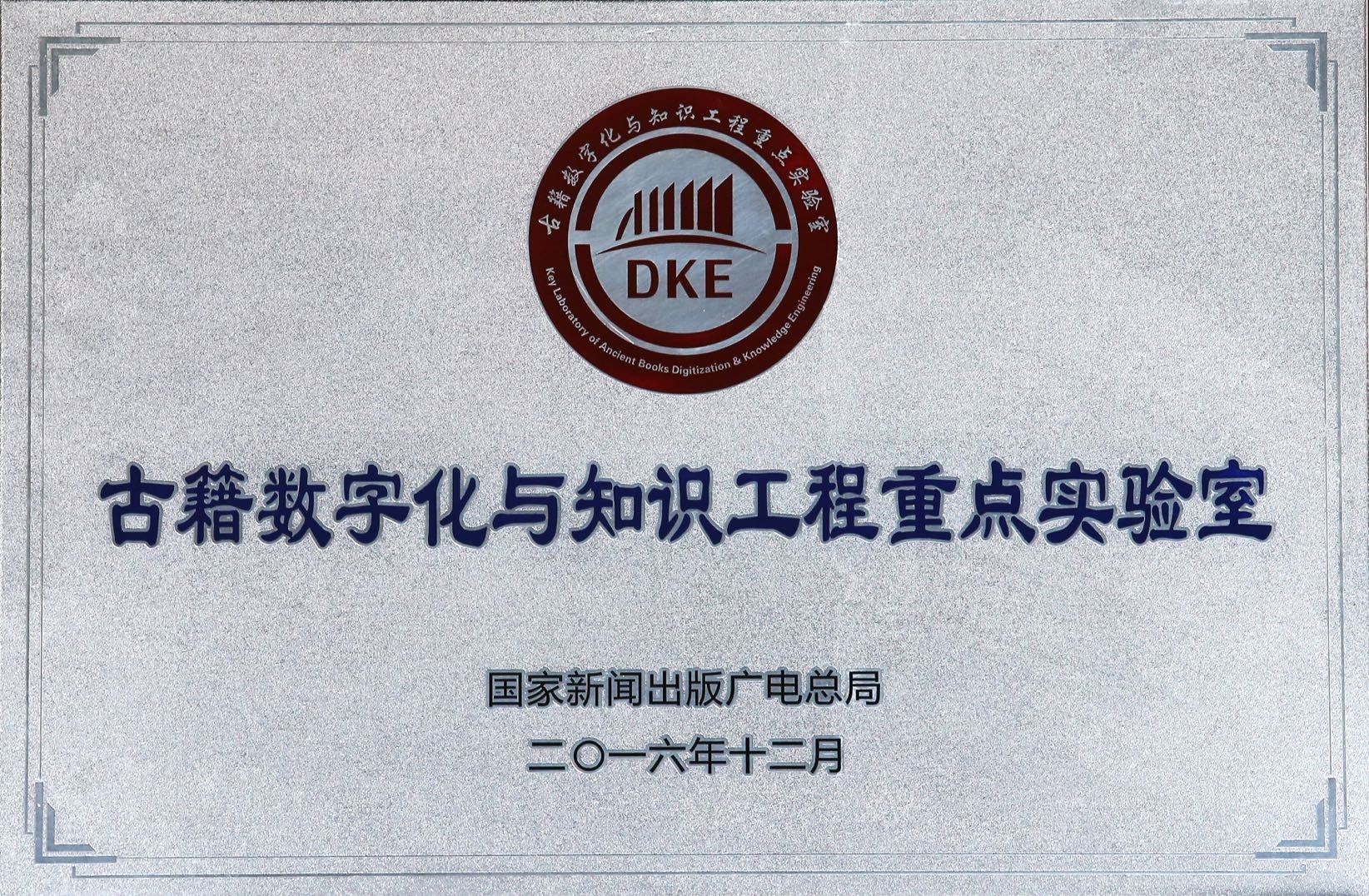 古籍數(shù)字化與知識工程重點實驗室獲中國新聞出版廣電總局“2016年度優(yōu)秀新聞出版業(yè)科技與標準重點實驗室”獎項