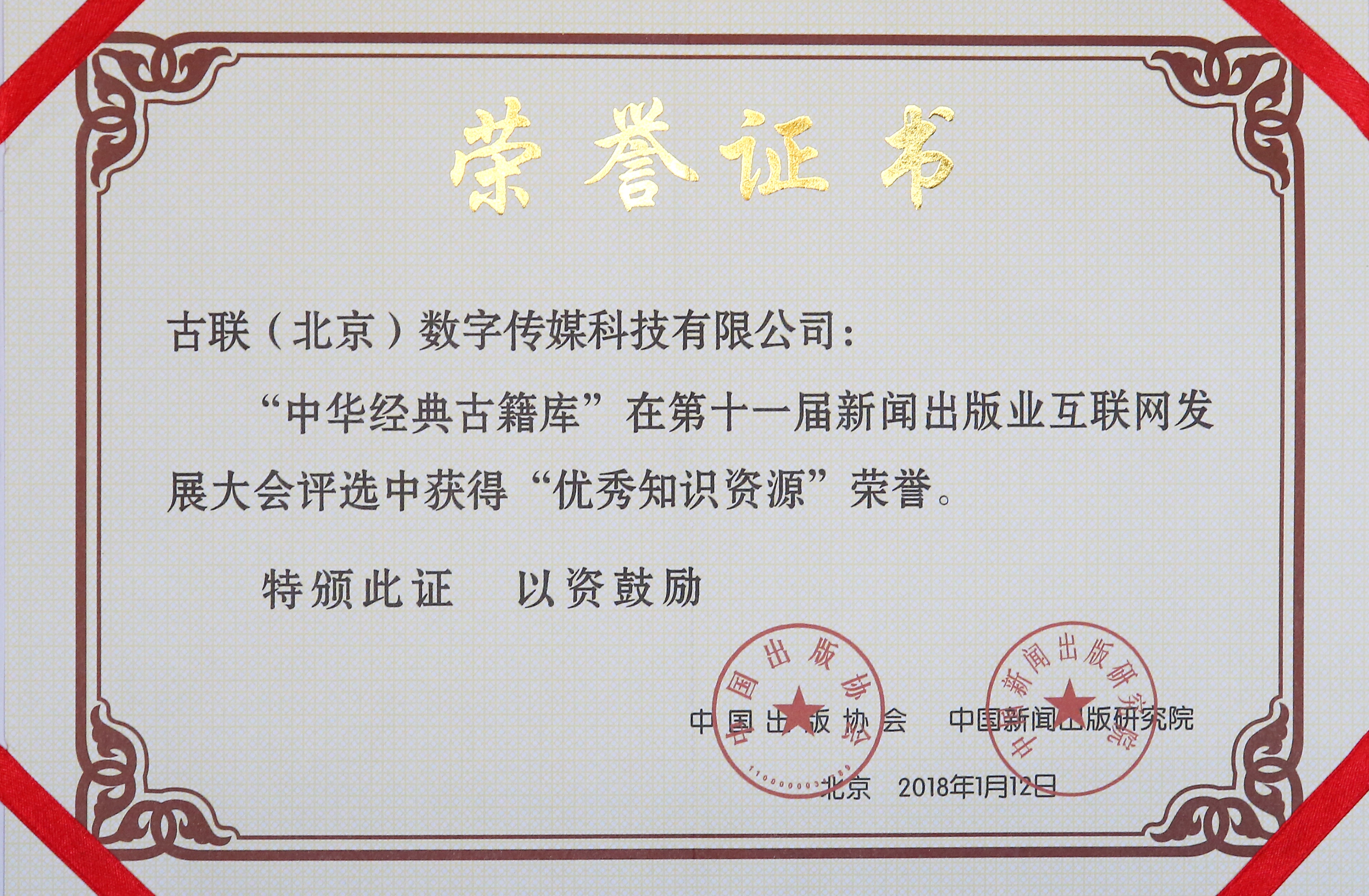《中華經(jīng)典古籍庫》榮獲第十一屆新聞出版業(yè)互聯(lián)網(wǎng)發(fā)展大會“優(yōu)秀知識資源”榮譽